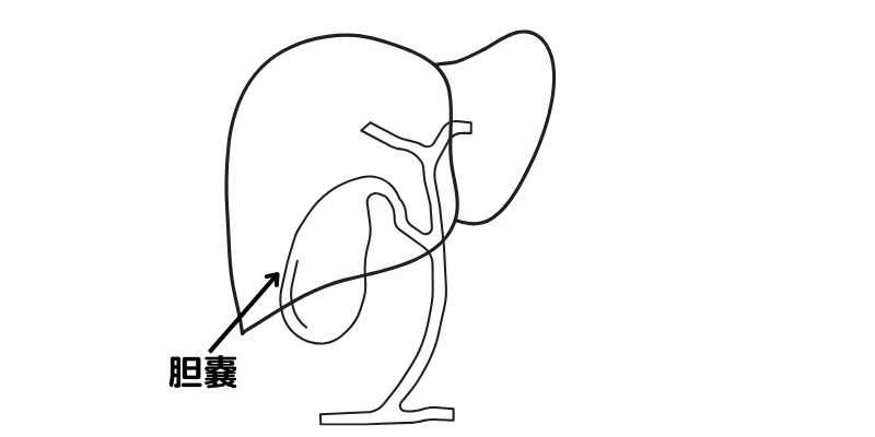胆嚢炎(たんのうえん)は、文字通り胆嚢(たんのう)に炎症が起こる病気です。胆嚢は肝臓で作られた胆汁(脂肪の消化を助ける液体)を蓄える臓器で、胆管につながっており、胆管を介して食事の際に胆汁を十二指腸へ分泌します。